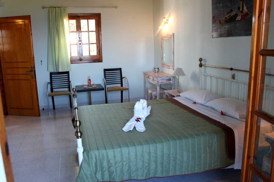 First floor : There is only an apartment of 60 sq.m . This apartment consists of 2 separate bedrooms,TV, fully equipped kitchen with dining room,shower/WC, bacony with splendid sea view and sunset view. The apartment can host 4-5 persons.